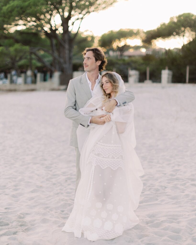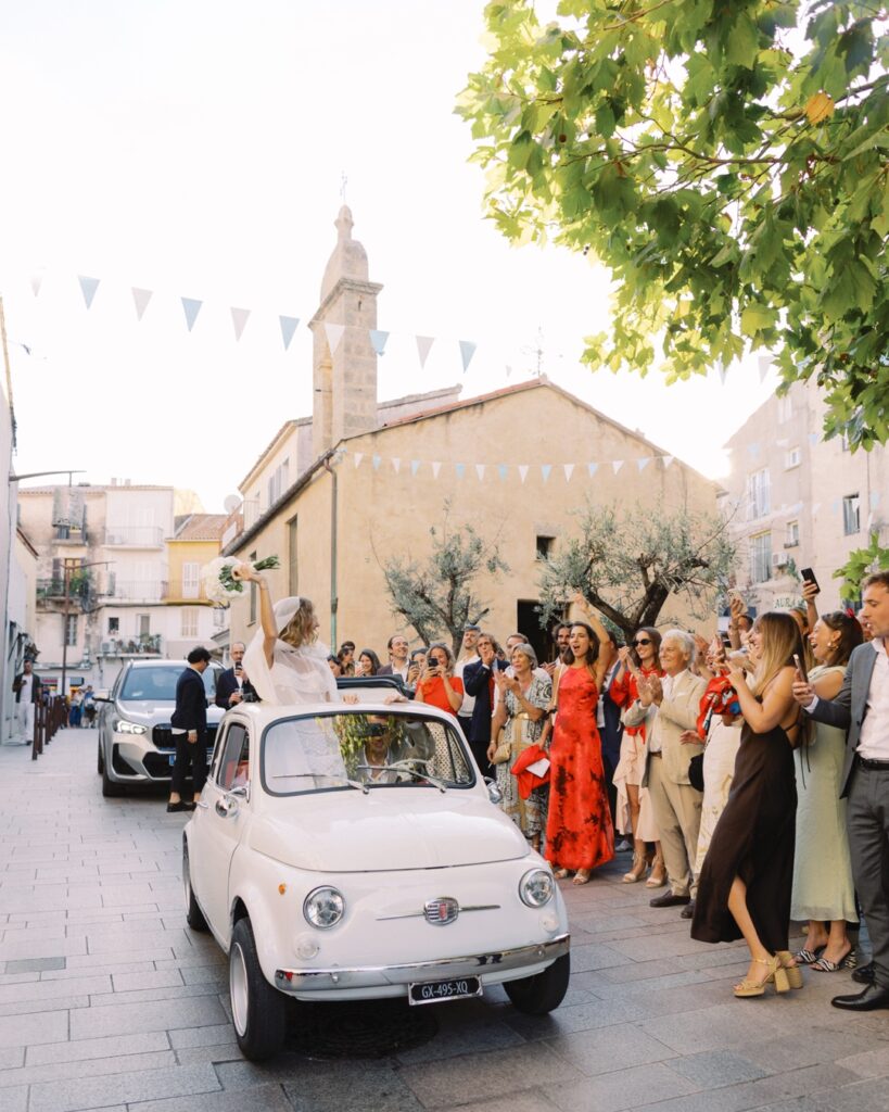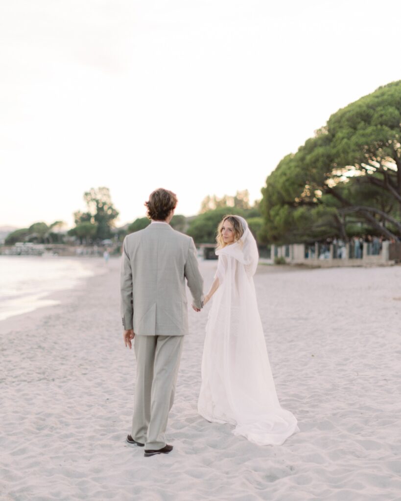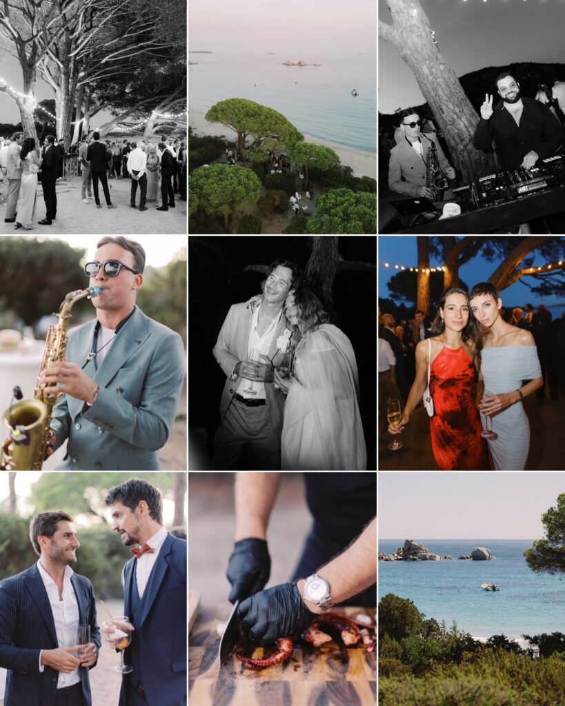 La journée a débuté à l’église de Porto-Vecchio, où une cérémonie simple et pleine d’émotion a réuni famille et amis. Puis, direction Palombaggia pour un cocktail les pieds dans le sable, bercé par le son du saxophoniste live et les sets du DJ Messina_ofc.
