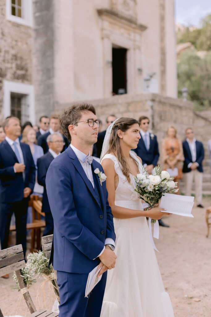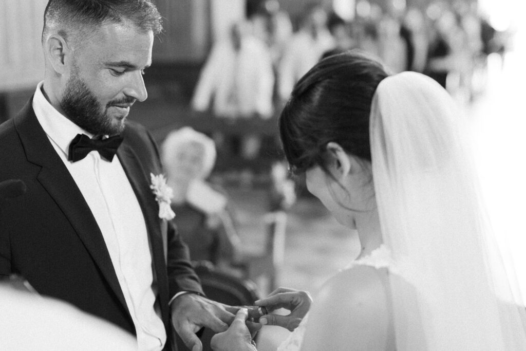Pendant la cérémonie, l’échange des vœux et des alliances sont des moments forts chargés d’émotion. Apprenez en amont du texte les vœux que vous allez prononcer l’un envers l’autre. Pour l’échange des alliances, je vous conseille de tenir l’anneau par deux côtés sans cacher les doigts, afin de capturer les détails et les émotions de ce moment précieux.